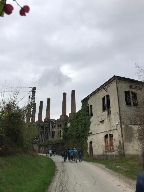 Lungo il percorso a piedi è stato possibile osservare da vicino lo sviluppo dell’industria del cemento del casalese, anche ai notevoli resti di archeologia industriale ancora presenti, seppur non in perfette condizioni: fra tutti, i piloni della teleferica, costruita su progetto dell’ingegner Carlo Riccio nel 1937 per trasportare la marna lungo un percorso di quasi quattro chilometri, dalla miniera Claretta di Rolasco agli stabilimenti della ditta Milanese & Azzi di Ozzano. Grazie agli edifici ancora presenti, gli alunni sono venuti a conoscenza delle durissime condizioni in cui versavano i minatori: sono rimasti particolarmente colpiti da uno sciopero organizzato dagli ozzanesi contro i proprietari delle miniere, conclusosi con il fallimento dell’iniziativa e con un ulteriore inasprimento della loro situazione.